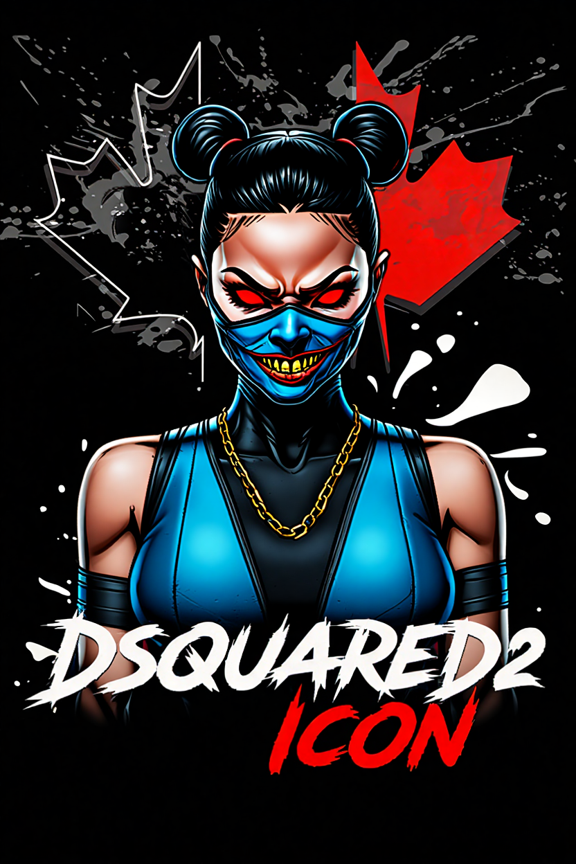 Un diseño atrevido y con una estética totalmente rompedora, donde el estilo urbano de Dsquared2 se fusiona con una versión oscura y reinventada de Chun-Li, la legendaria luchadora de Street Fighter, transformada en un auténtico ícono del streetwear.