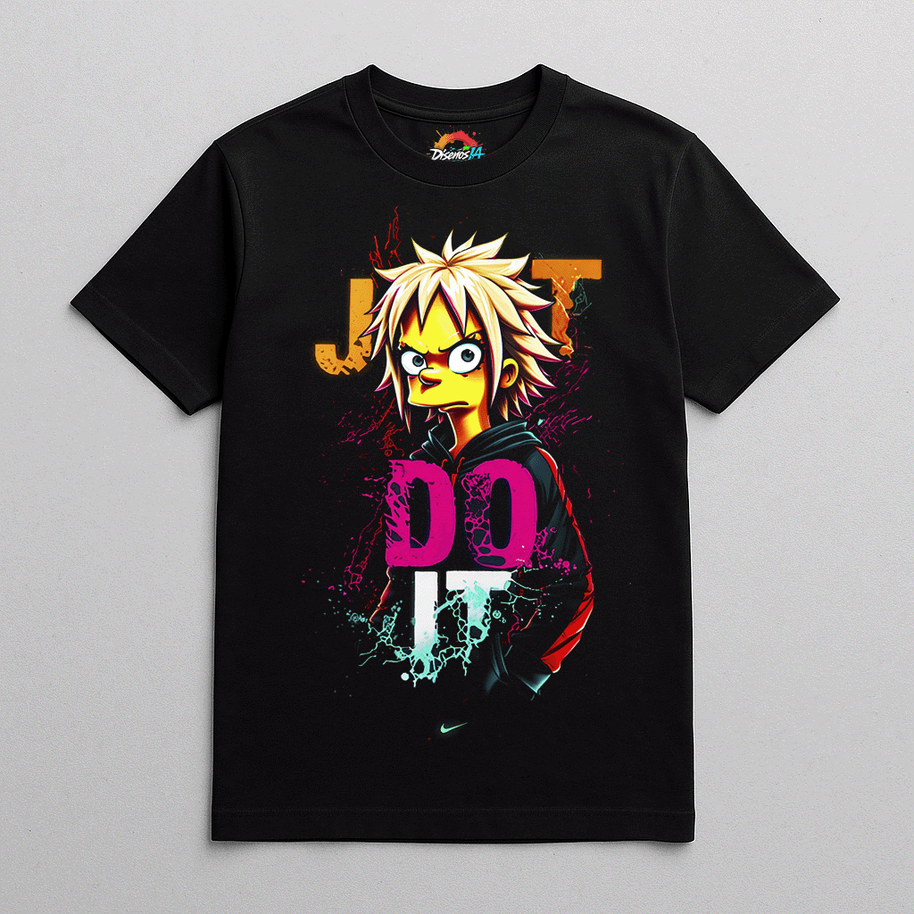 La rebelde Lisa Simpson se transforma en un icono del estilo urbano con este diseño explosivo. La inteligencia y determinación del personaje se mezclan con una estética moderna inspirada en el lema “Just Do It”, creando una camiseta que transmite actitud, energía y carácter.