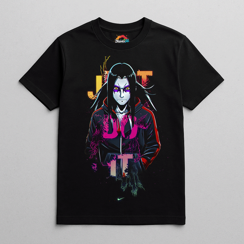 Oscuridad, misterio y poder se fusionan en este diseño inspirado en Orochimaru, uno de los villanos más icónicos del universo Naruto. El lema JUST DO IT adquiere un matiz siniestro y electrizante, reflejando la ambición desmedida y la energía intimidante de este personaje legendario.