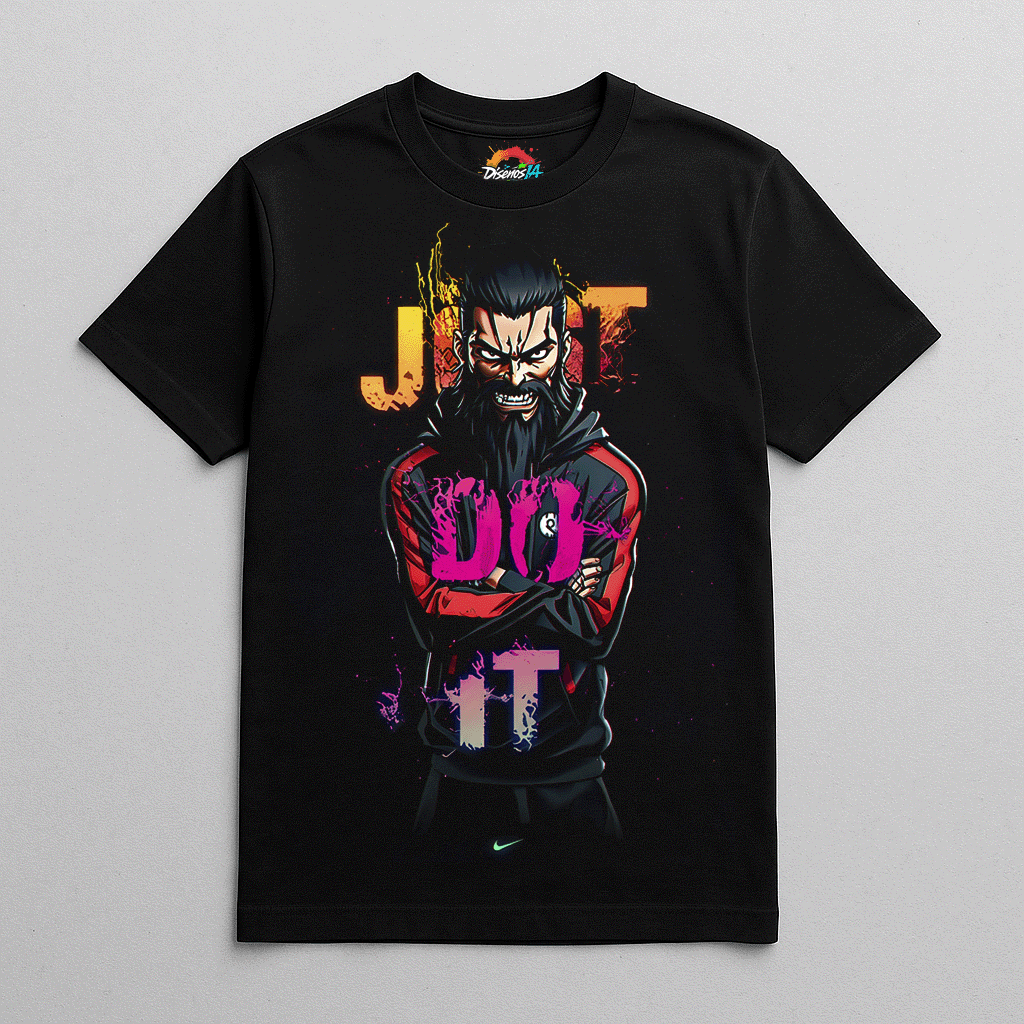 El cazador de héroes Garou irrumpe con toda su furia en este diseño exclusivo lleno de energía y rebeldía. Su mirada desafiante y su postura firme se funden con el lema “JUST DO IT”, representando la fuerza interior y la determinación inquebrantable. Un diseño con pura actitud urbana y espíritu de lucha.