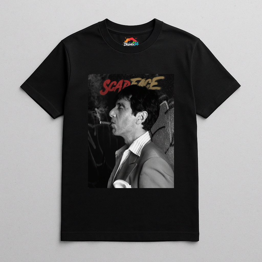 Luce estilo y actitud con esta camiseta Scarface, un tributo a la icónica figura de Tony Montana, interpretado por Al Pacino.